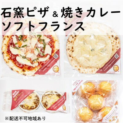 【ふるさと納税】本格石釜焼き冷凍Pizza(冷凍2枚)&本格冷凍焼きカレー(冷凍)&ソフトフランス 【加工食品・惣菜・レトルト・パン・惣菜パン】
