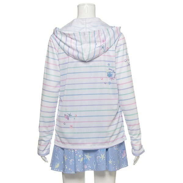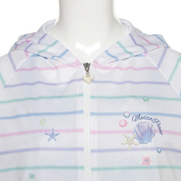メゾピアノジュニアのシェル柄ラッシュガードパーカー【SWIM】カラフルなボーダー生地にシェル柄が浮かぶ、マリンムードただようラッシュガードパーカーです。