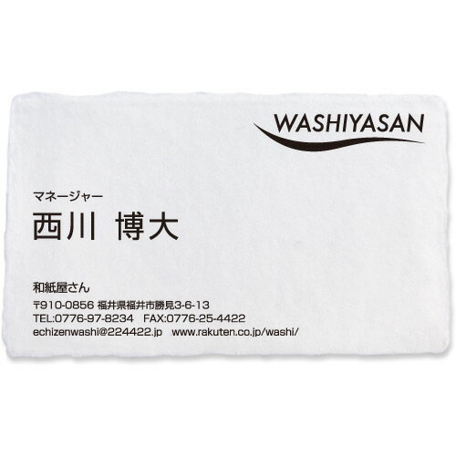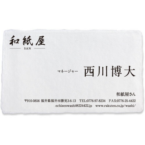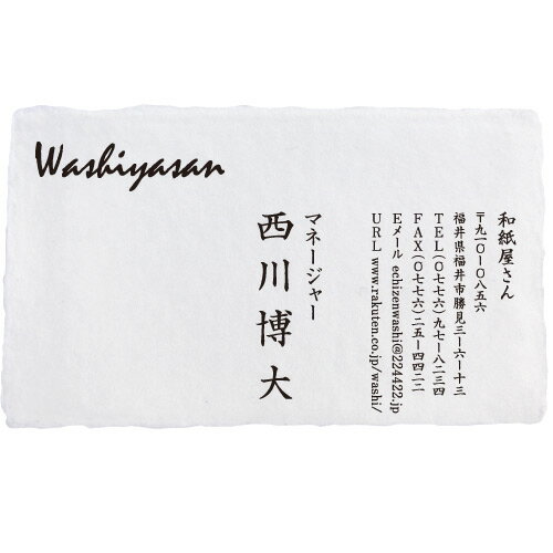 名刺作成 印刷 越前和紙 手漉き 耳付き 「菊花・きくか」 100枚 pyyj002l 和紙/わし/手すき/耳つき