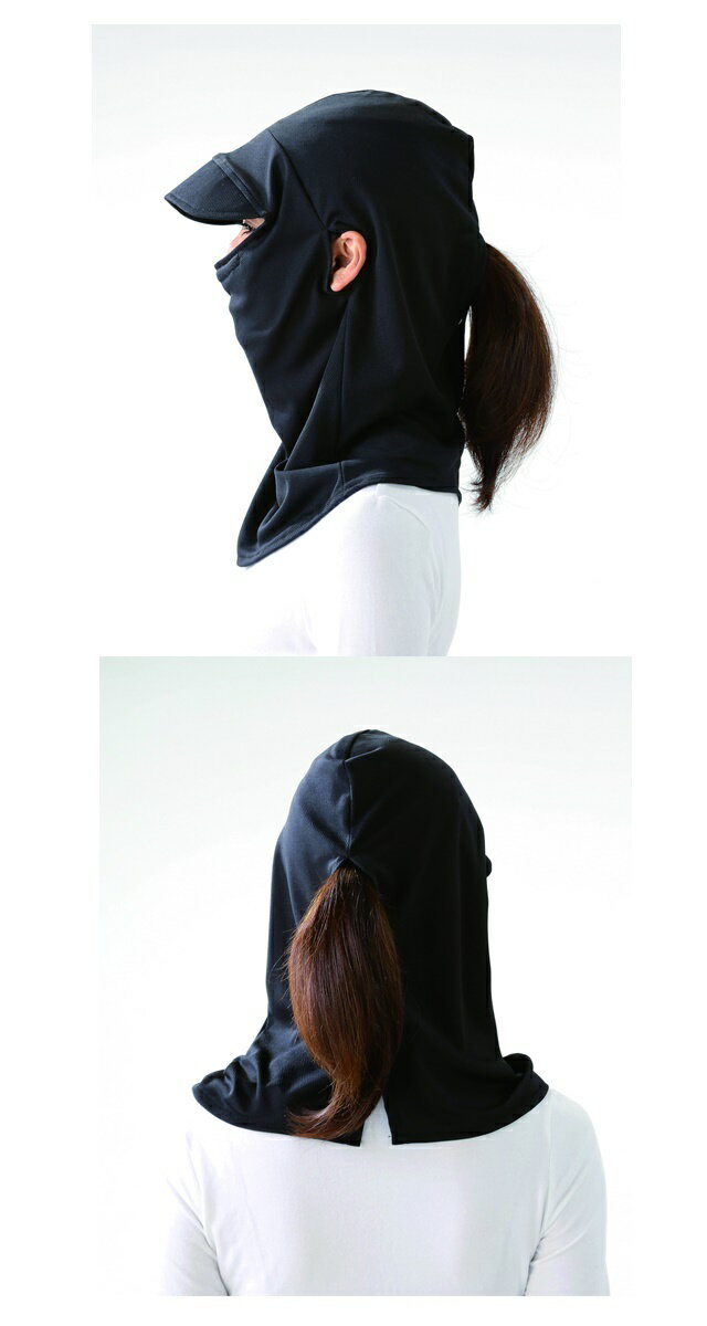完全防備で頭の先から首筋までをしっかりカバーします。